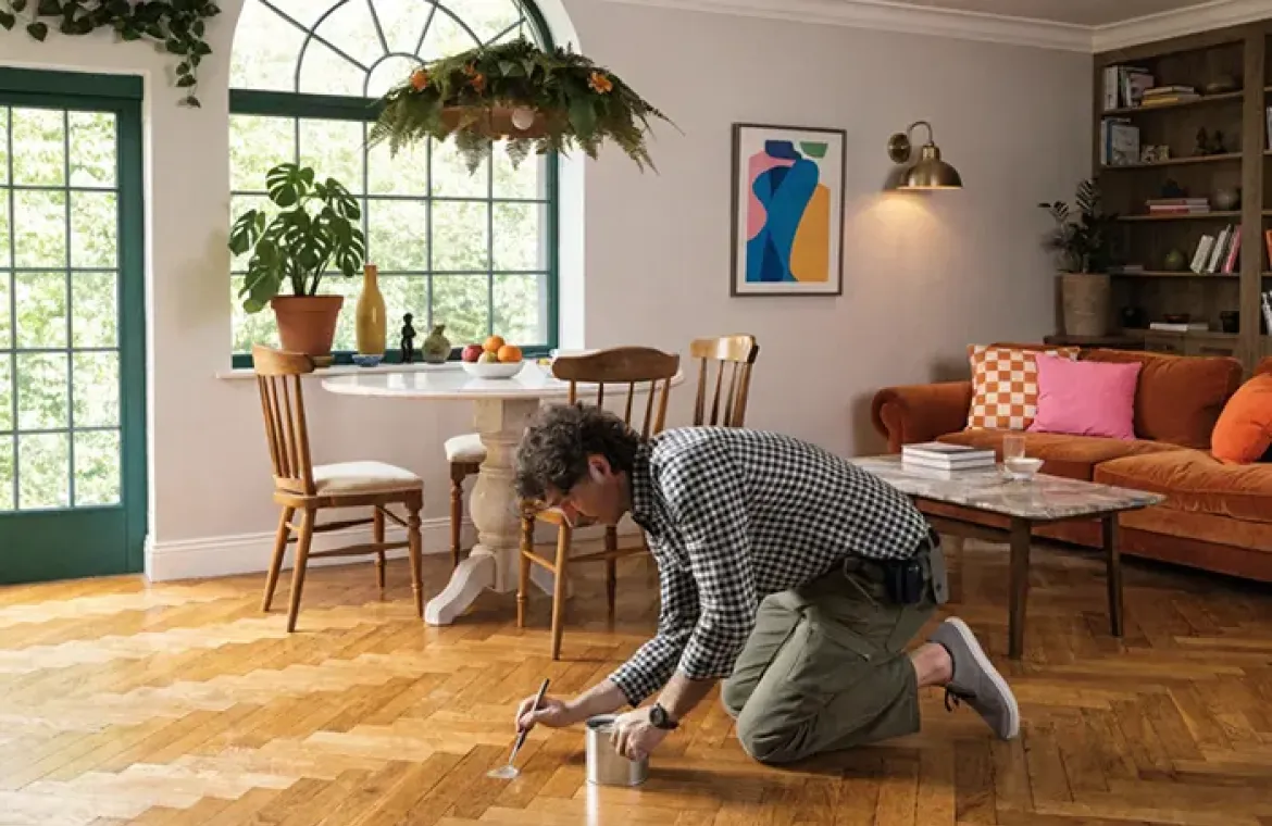 Son approche repose sur des méthodes traditionnelles éprouvées, associées à des produits haut de gamme sélectionnés pour leur résistance et leur tenue dans le temps. Ce choix garantit un résultat esthétique, mais aussi une protection durable du parquet.